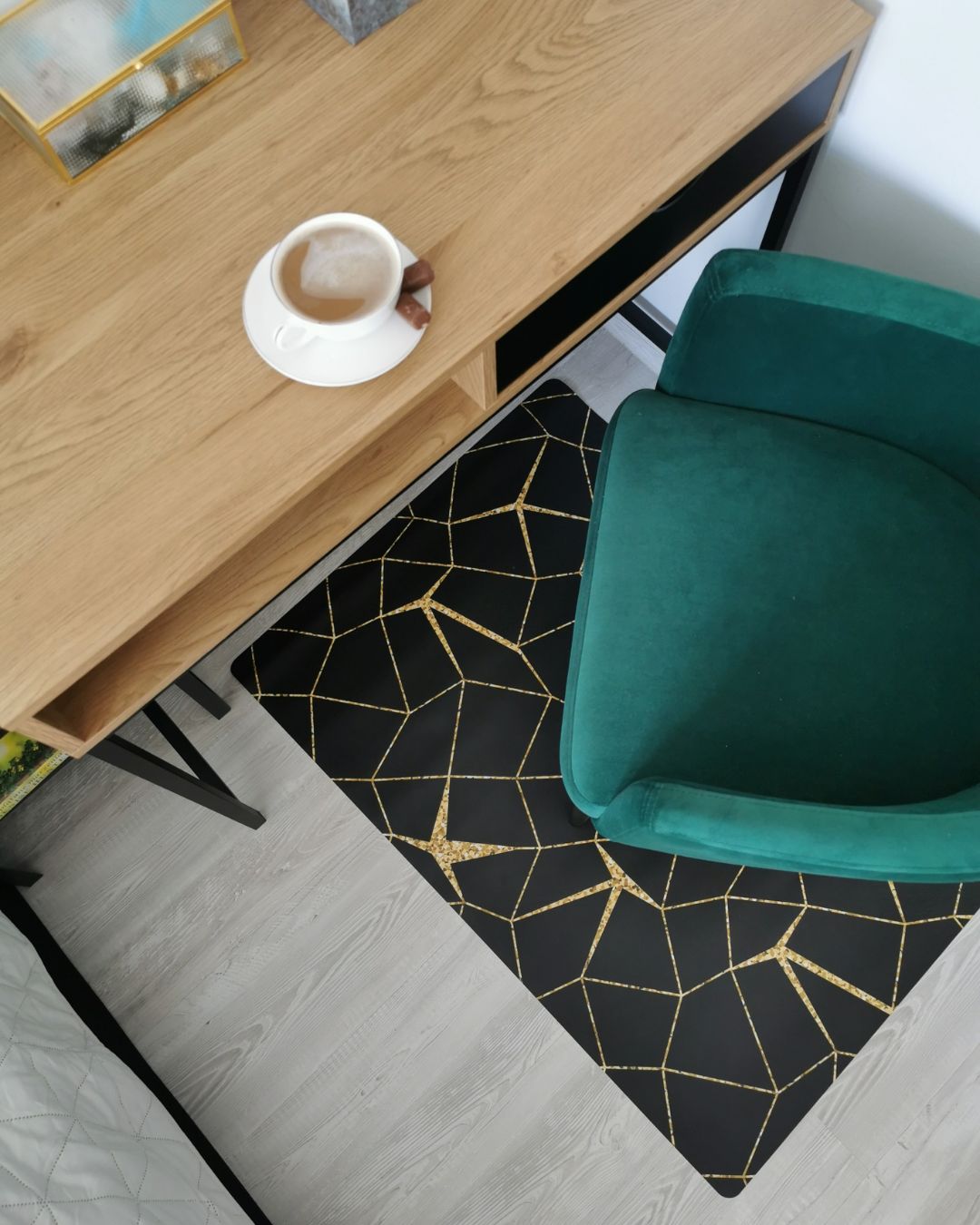 Įsigykite apsauginį grindų kilimėlį 'Auksinė ir juoda mozaika' ir mėgaukitės ne tik grindų apsauga, bet ir estetiškai patraukliu dizainu. Tai puiki investicija tiems, kurie ieško ne tik funkcionalumo, bet ir stiliaus savo darbo ar gyvenamojoje erdvėje.